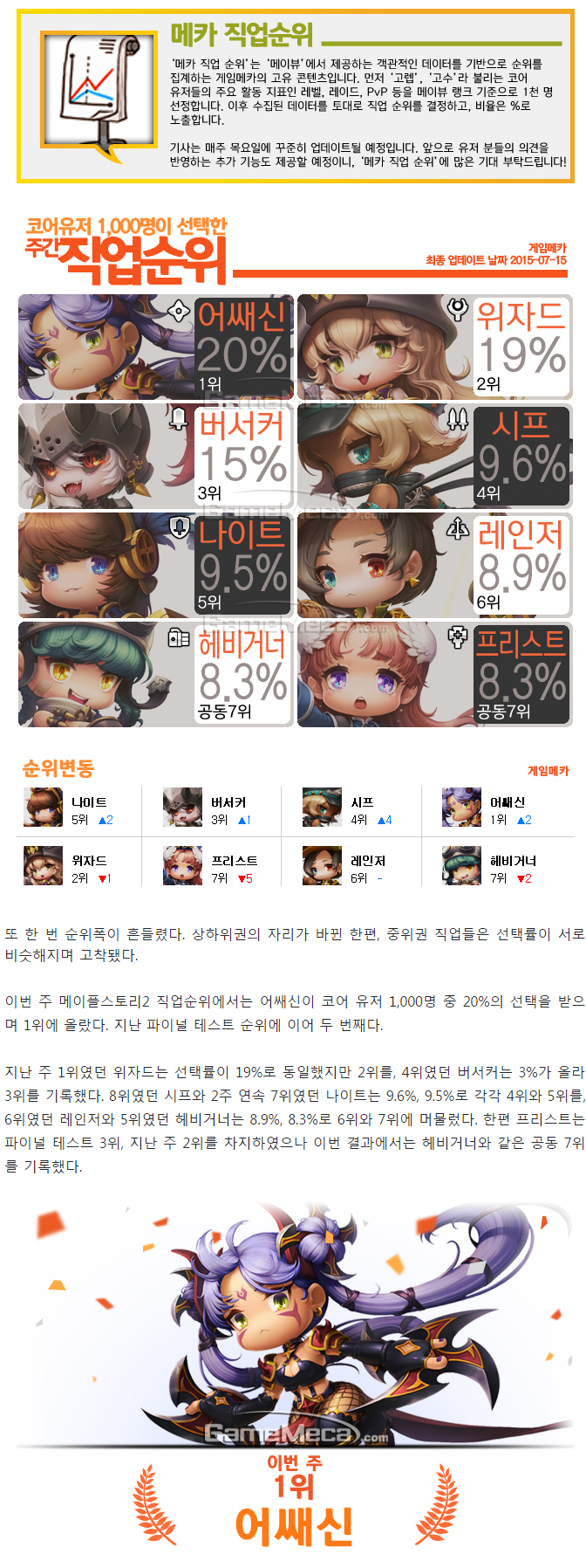 메이플스토리2 7월 3주차, 어쌔신 포함 3강 체제 구축
