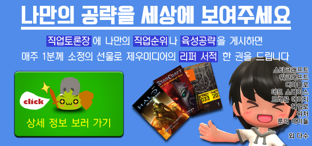 또한 나만의 직업순위를 매기거나, 육성공략을 공유하면 매주 추첨을 통하여 1분께 제우미디어㈜의 리퍼 서적을 제공하고 있습니다.
