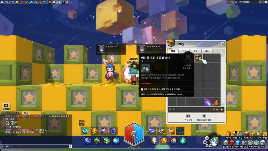 열심히 뛰고 점프하고 수영하고 풍선매달리고 기어다니고 앉아있고 줄에 매달리고 몬스터에 매달리고 사다리에 매달리고 열심히 사냥하고 잠수하고 물약먹고 퀘스트 열심히 깨고 모든지 파괴하고 물건 던지고 벽을 타기.